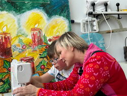 An der Schule am Mummelsoll in Marzahn-Hellersdorf gibt es eine wunderschöne Näh- und Kreativwerkstatt für die Schüler*innen, die von Antje Blankenhagen betrieben wird. Die gelernte Schneiderin und tandem-Mitarbeiterin arbeitet bereits seit 10 Jahren an dem Förderzentrum mit dem Schwerpunkt "Geistige Entwicklung".  Seit November ist die Näh- und Kreativwerkstatt in einen großzügigen Raum neben der Schwimmhalle gezogen, dort haben wir Antje Blankenhagen besucht.
