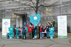 Ein fröhliches türkisfarbenes Alien mit wolkigem Kopf begrüßt neuerdings die Besucher*innen der Wedding-Grundschule. Es steht für den Wert Teamgeist. Begleitet vom Verein DENK - MAL - WERTE e.V. hatte sich die Schule 2020 auf dem Weg gemacht, in einem demokratischen Prozess gemeinsam zu entscheiden, welcher Wert für die Wedding-Grundschule besonders wichtig ist. Die Wahl fiel auf den „Teamgeist“.